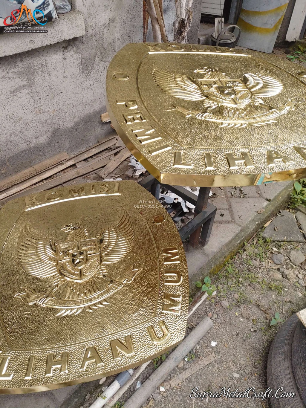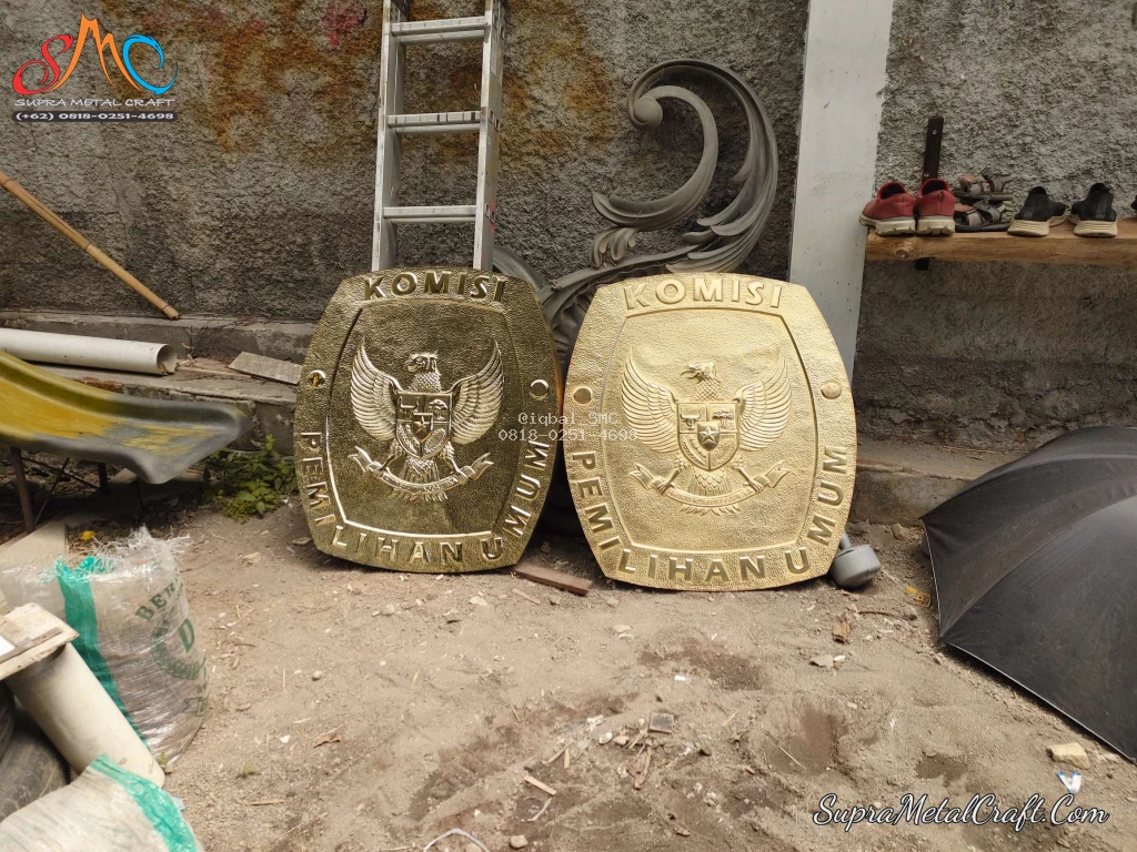 Suprametalcraft merasa bangga bisa mengambil bagian dalam proses ini. Kami dipercaya untuk menghadirkan sentuhan seni dan ketelitian melalui pembuatan logo KPU yang menjadi identitas penting bagi setiap gedung. Logo ini kami kerjakan menggunakan bahan logam kuningan berkualitas tinggi, yang dipahat secara detail dengan teknik ukir timbul, menghadirkan kesan elegan dan berwibawa.